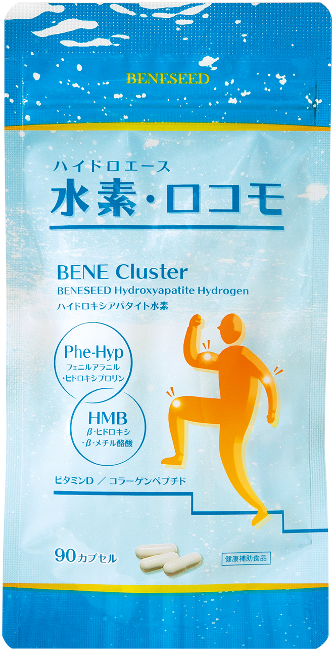近年、健康志向の方に注目されている「水素」。体内に取り入れることでイキイキとした毎日が過ごせると期待されています。ハイドロ エース「水素・ロコモ」は、オリジナル原料「ハイドロキシアパタイト水素」に加えて、「Phe-Hyp含有鶏足エキス」「HMBカルシウム」「コラーゲンペプチド」「ビタミンD」などをバランスよく配合。若々しく健康的な毎日と、スムーズで力強い動きを支えるサプリメントです。